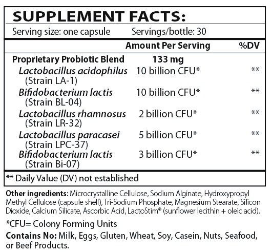 A multi-strain probiotic supplement designed to support immune health and digestive regularity. Theralac® contains 30 billion CFU of lactobacilli and bifidobacteria probiotic cultures for complete intestinal coverage. The strains synergize and work together to promote digestive health, wellness, and a return to regularity so you can feel your best. This probiotic is part of Dr Horowitz's regular probiotic regimen to support GI health while on antibiotics for the treatment of Lyme and associated diseases. The strains of the 5 bacteria are placed in sodium alginate coated capsule to ensure that 95% of the probiotic strains make it to the intestines (FDA patent) without being destroyed by the stomach acid. There are multiple published scientific references on the strains in Theralac. It is an excellent choice for a probiotic supplement, whether for daily use with or without antibiotics (Dr H and his wife take it regularly).